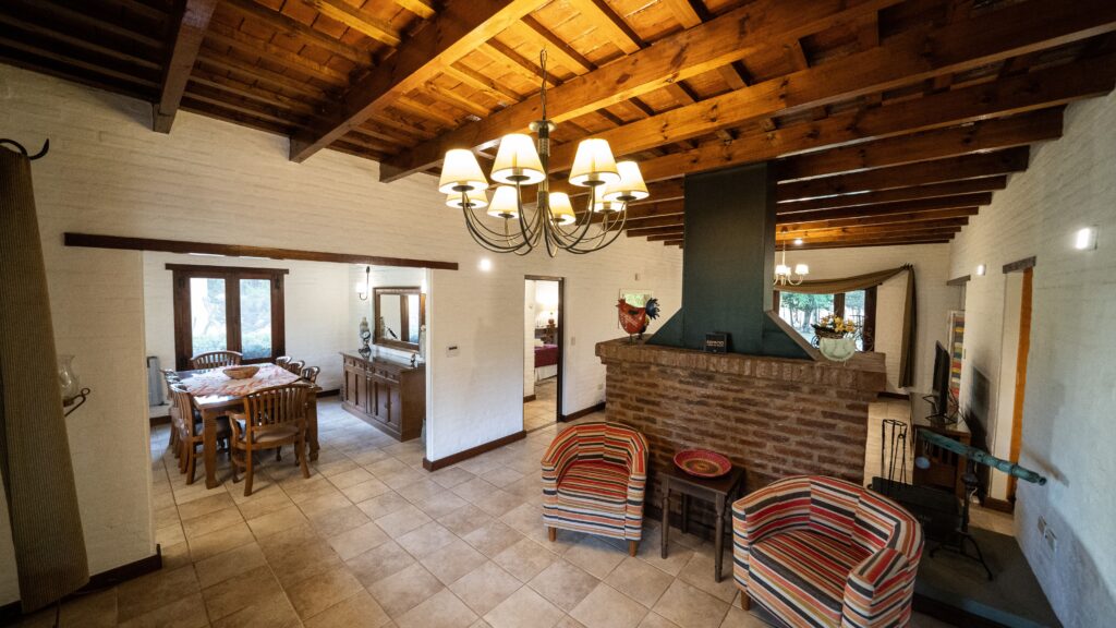 Descubre la comodidad de nuestros tres dormitorios, cada uno diseñado para alojar a dos personas, con baño privado y ducha en cada uno de ellos. Además, tiene un sector con dos camas mas, podrás disfrutar de un comedor luminoso, una acogedora sala de estar con chimenea y televisión, y una amplia cocina equipada con todos los electrodomésticos necesarios para tu día a día.