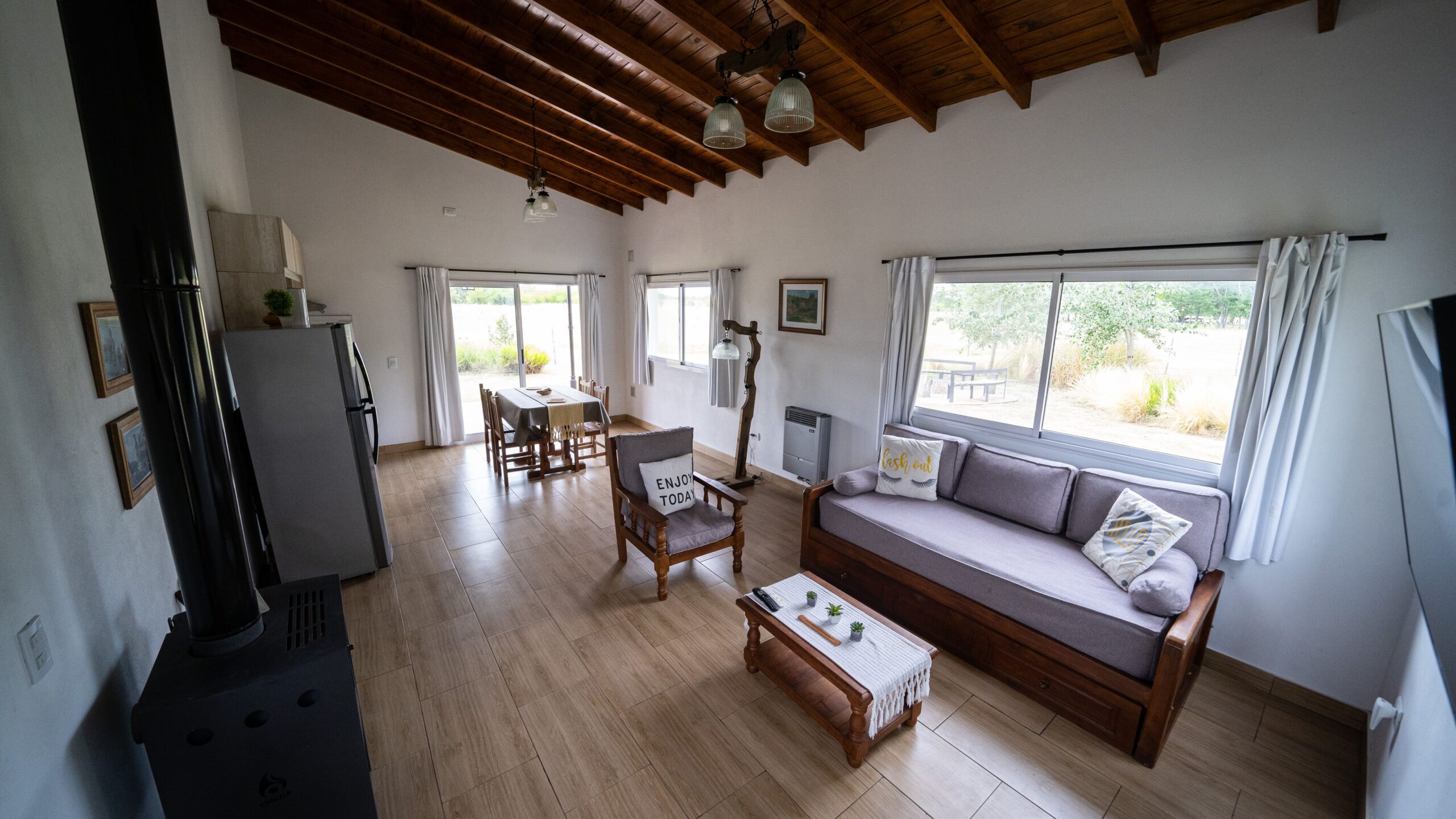 Disfruta de momentos de tranquilidad en nuestra encantadora galería, donde podrás deleitarte con una deliciosa parrillada mientras admiras el cautivador atardecer. Además, tendrás la oportunidad de compartir el entorno con caballos y vacas que vienen a tomar agua cerca de la casa, creando un ambiente sereno y especial desde nuestro “sector de paz” que se encuentra al lado de la casa.