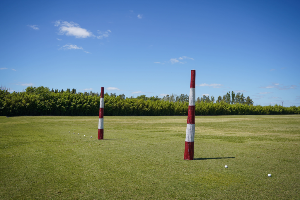Nuestra cancha de polo es de medidas reglamentarias (300 yardas de largo x 160 yardas de ancho). Cuenta con Tablas. Está rodeada a un lado de un cerca de caña tacuara a fin de mantener la privacidad del club. La cancha se encuentra a escasos metros de la casa principal, la pileta y las instalaciones.